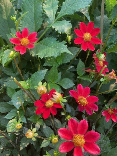 1-2" tiny red single flowers are a nice pop of color for borders or pots. Makes a bushy plant 24" high, very prolific, always blooming