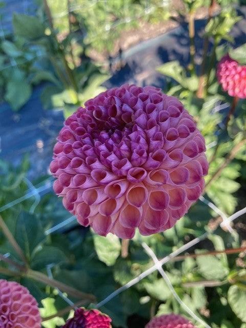 Dense 3" ball, violet shades with pink overlay as weather warms, very early blooming. 4' plant.