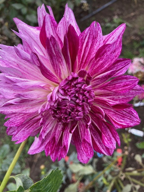 5-6" informal decorative with irregular streaks of purple, magenta and white