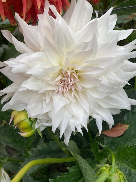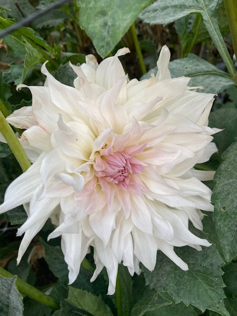 6" lovely, late blooming decorative with pale lavender center, strong stems, tall plant
