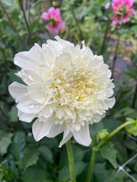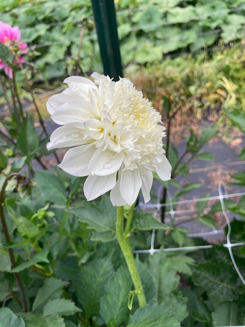 Lovely 2.5" white anemone with big puff and short petals, 3' plant.